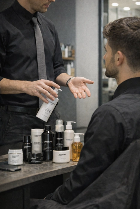 In base alla tipologia dei tuoi capelli, ti consigliamo i prodotti più adatti per la loro cura e gestione quotidiana. Anche per l’uomo è importante saper gestire i capelli in autonomia, così da mantenere nel tempo il risultato ottenuto in salone. Per ottenere il miglior effetto, è fondamentale conoscere la modalità di applicazione più corretta, capace di valorizzare la forma del taglio e allo stesso tempo rispettare la salute dei capelli. Per questo selezioniamo prodotti delicati e trattanti, pensati per prendersi cura sia della cute che delle lunghezze, garantendo capelli sani, ordinati e facili da gestire ogni giorno.